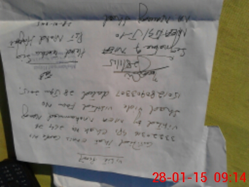 | Monitoring Date: 28-01-2015 | Start Time: 28-01-2015 08:39 AM | End Time: 28-01-2015 09:17 AM | Name of MEA: J-**** MO**** NA**** (R**** | |