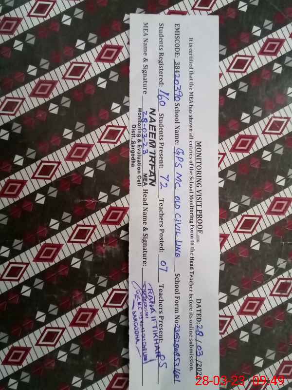 | EMIS Code: 38420390 | Name of School: GPS MC OLD CIVIL LINE SARGODHA | |||