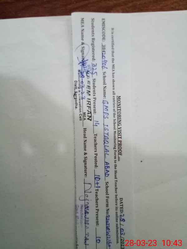 | EMIS Code: 38420406 | Name of School: GMPS ISTAQLAL ABAD | |||