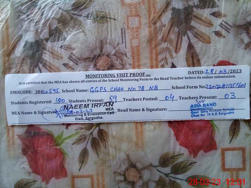 | EMIS Code: 38420595 | Name of School: GGPS CHAK NO.78 NB SARGODHA | |||