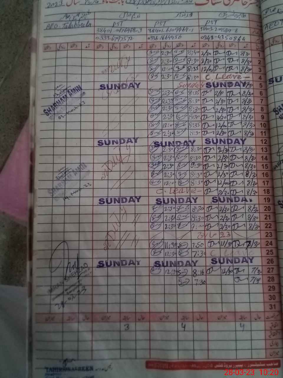 | CNIC | Full Name | Designation | R/C | Absence During Last Calender Month |