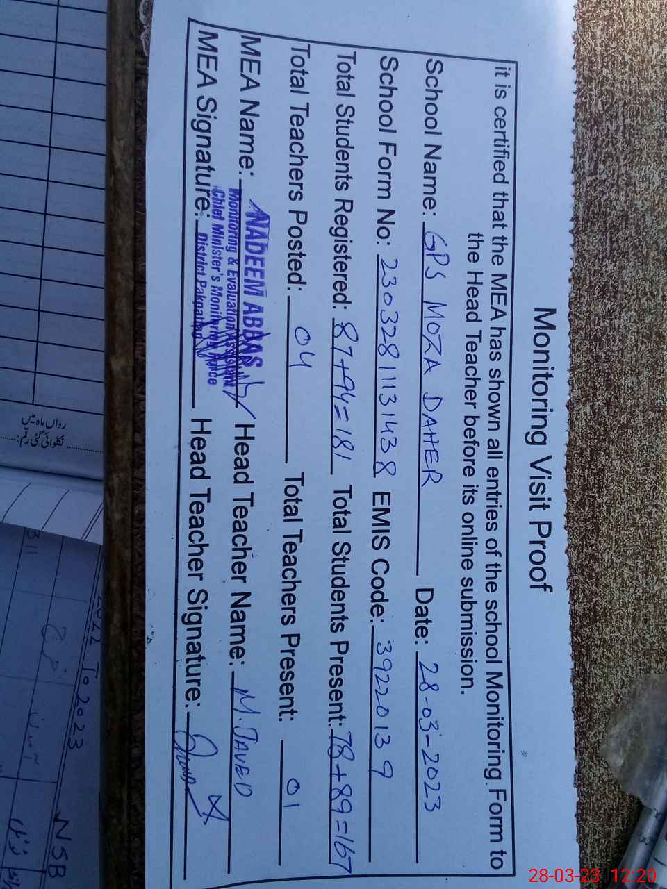 | EMIS Code: 39220139 | Name of School: GPS MOZA DAHER | |||