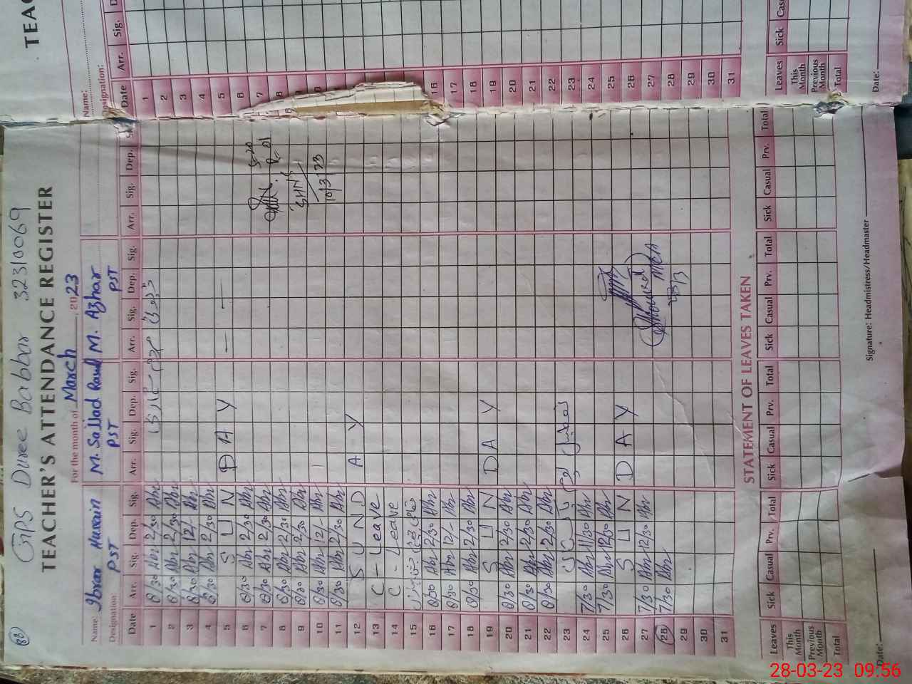 | Name: MU**** AZ**** Designation: (School Headmaster's/Headmistress's) PST Phone/Cell Number: 03**** |