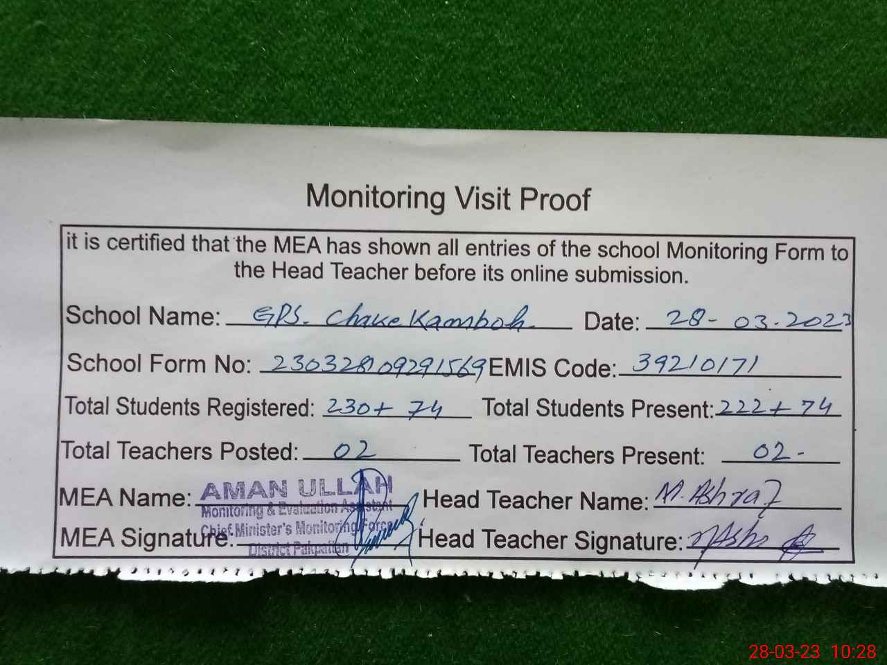 | EMIS Code: 39210171 | Name of School: GPS CHAK KAMBOH PO PAKPATTAN | |||