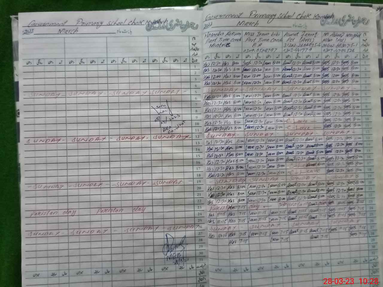 | Name: As**** Fa**** Designation: (School Headmaster's/Headmistress's) PST Phone/Cell Number: 03**** |