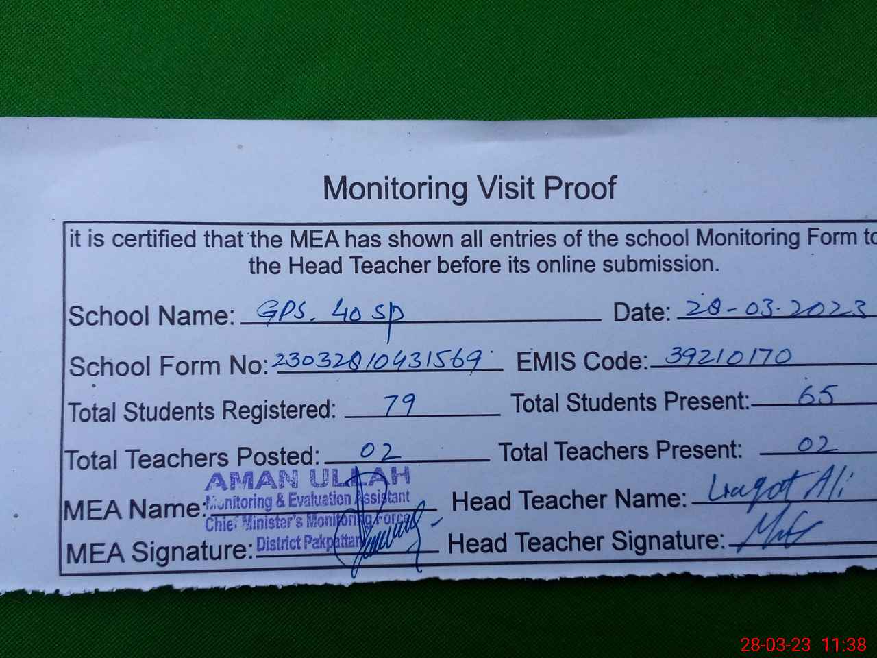 | EMIS Code: 39210170 | Name of School: GPS 40 SP | |||