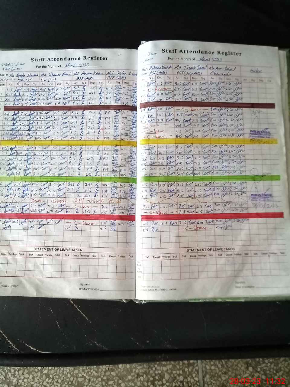| Name: AY**** HU**** Designation: (School Headmaster's/Headmistress's) S STGENERAL Phone/Cell Number: 03**** |