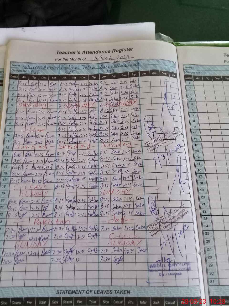 | Leave | Duty | Absent | Maternity | Medical | Ex- Pak |