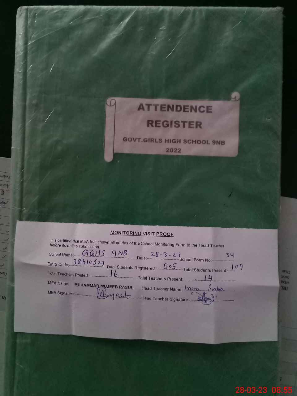 | EMIS Code: 38410527 | Name of School: GGHS CHAK NO.9 NB | |||