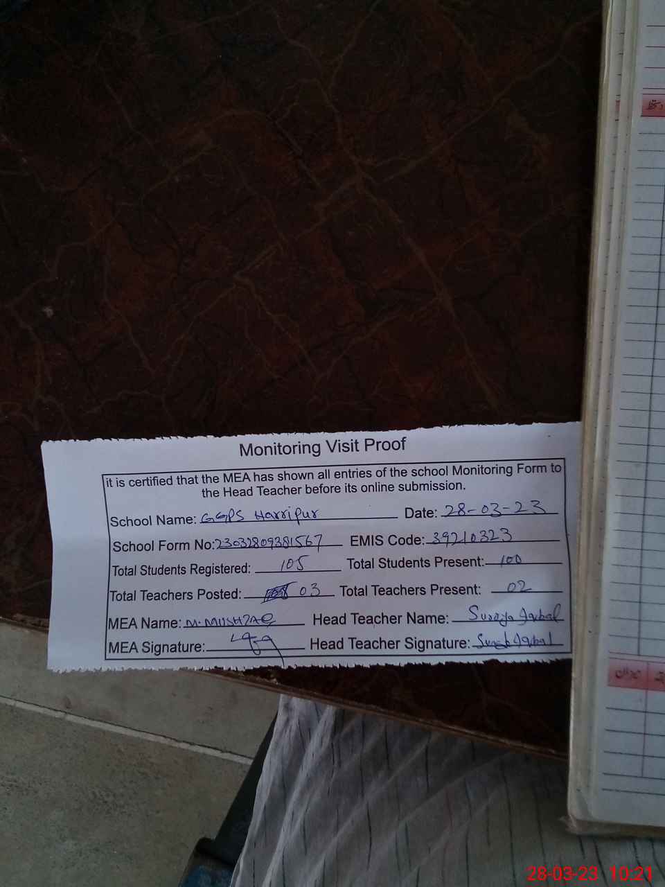 | EMIS Code: 39210323 | Name of School: GGPS HAREE PUR | |||