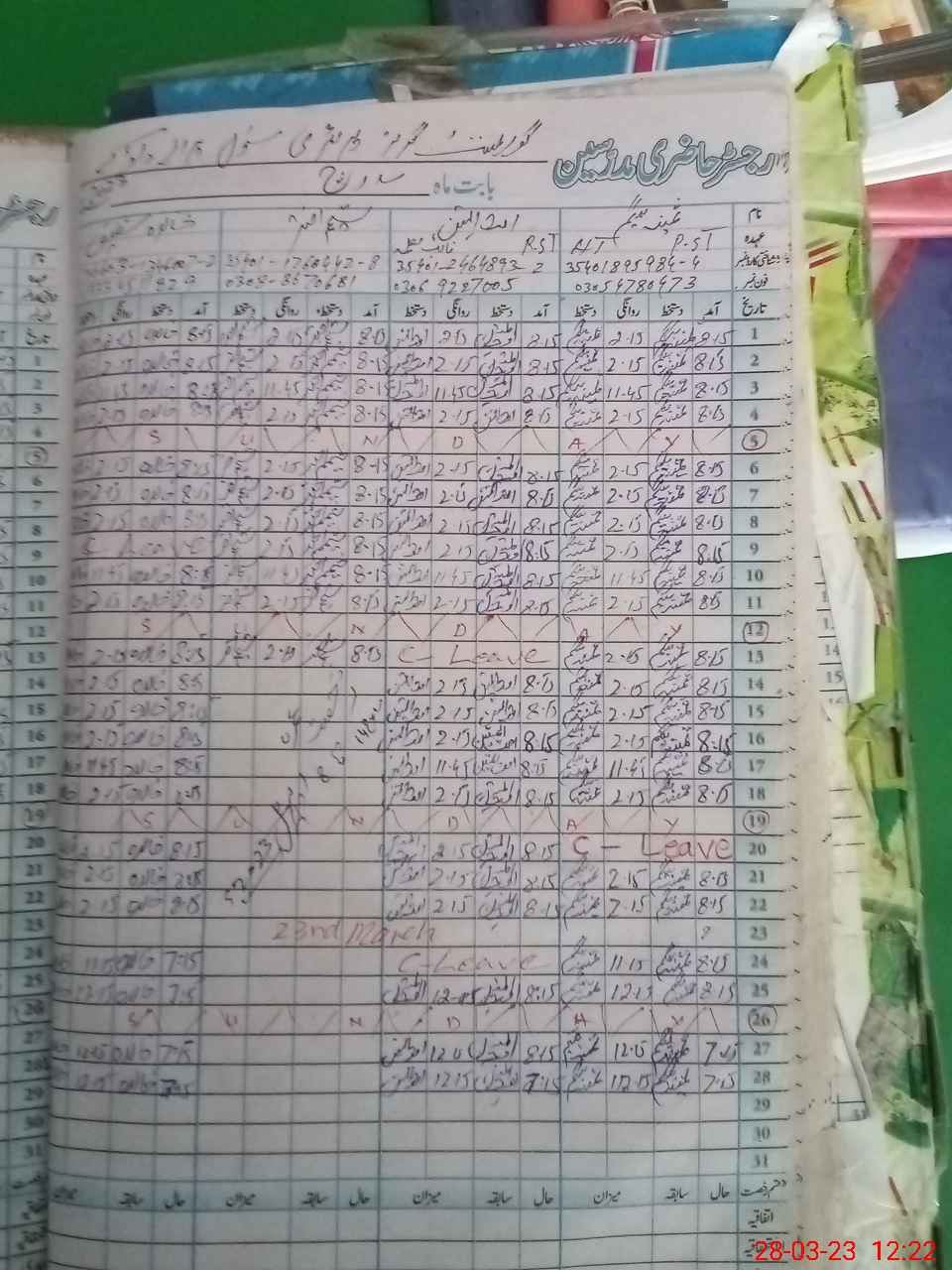 | Leave | Duty | Absent | Maternity | Medical | Ex- Pak |