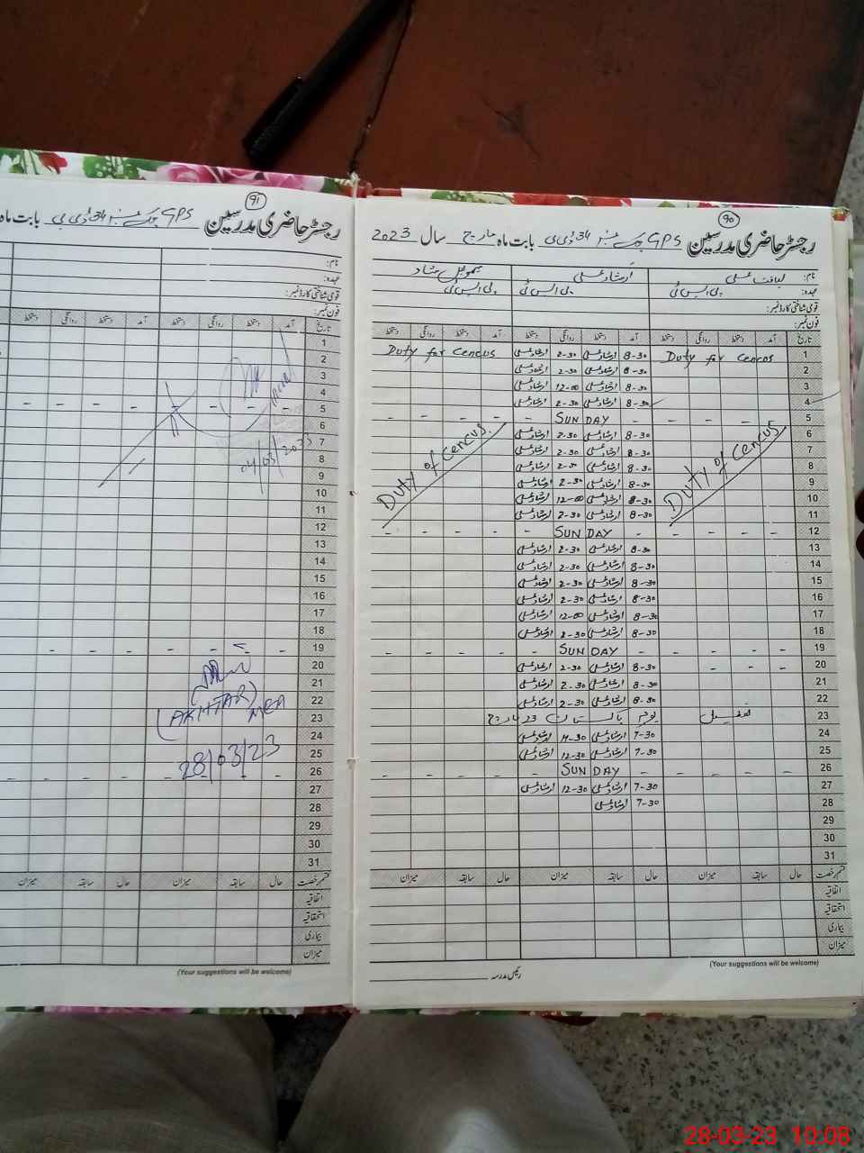 | CNIC | Full Name | Designation | R/C | Absence During Last Calender Month |