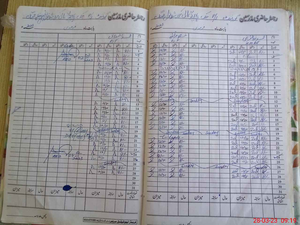 | Name: MU**** ZU**** Designation: (School Headmaster's/Headmistress's) PST Phone/Cell Number: 03**** |