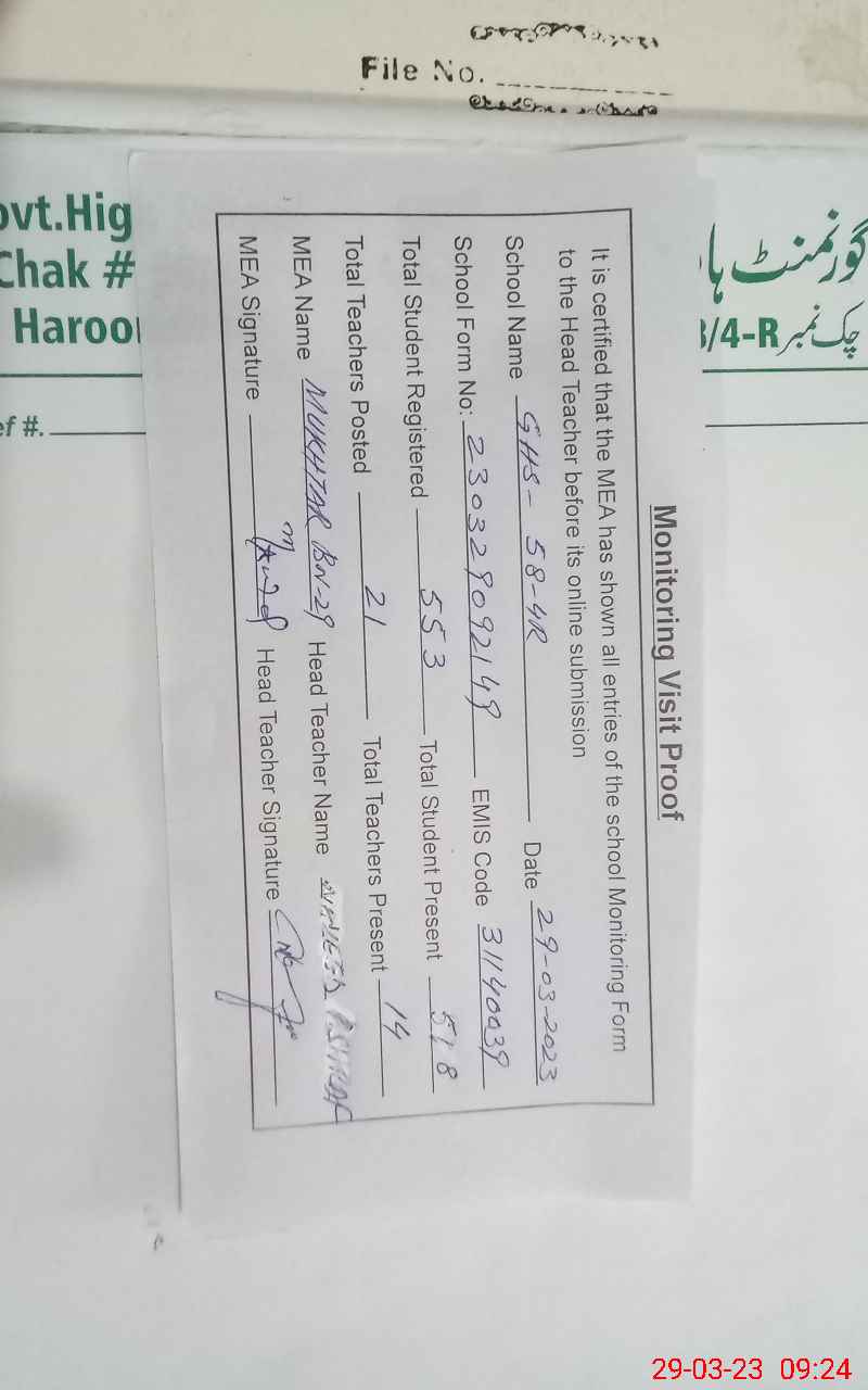 | EMIS Code: 31140039 | Name of School: GHS CHAK 58/4-R | |||