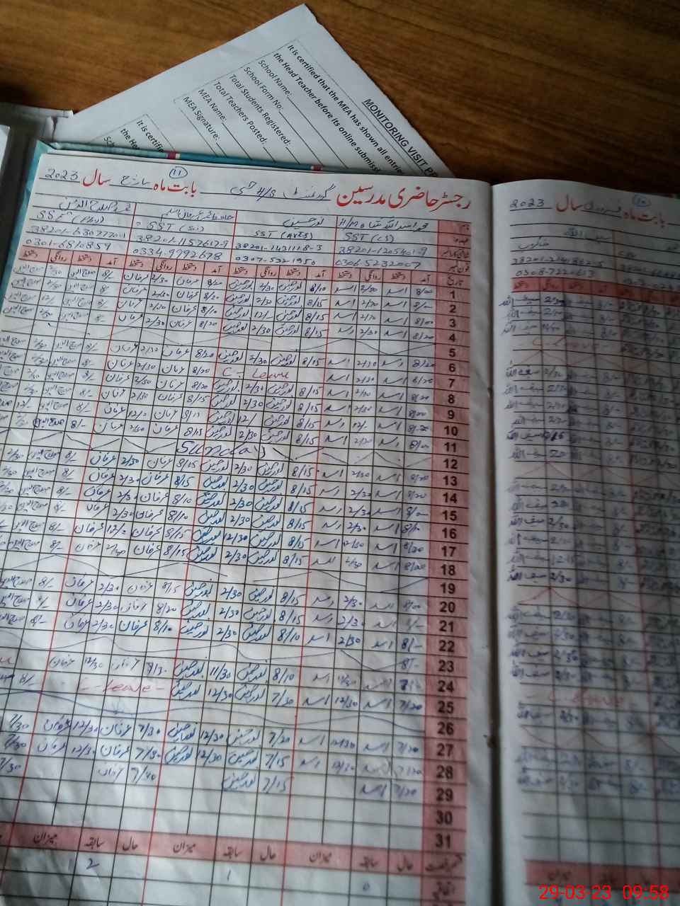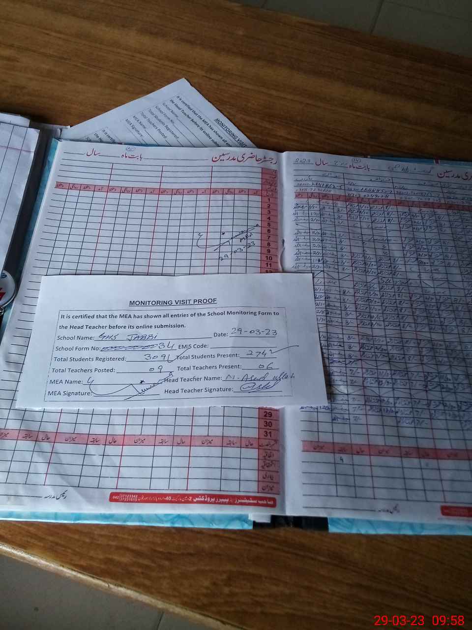 | Attendance Register | Head Teacher | MEA with School | Visit Proof |
