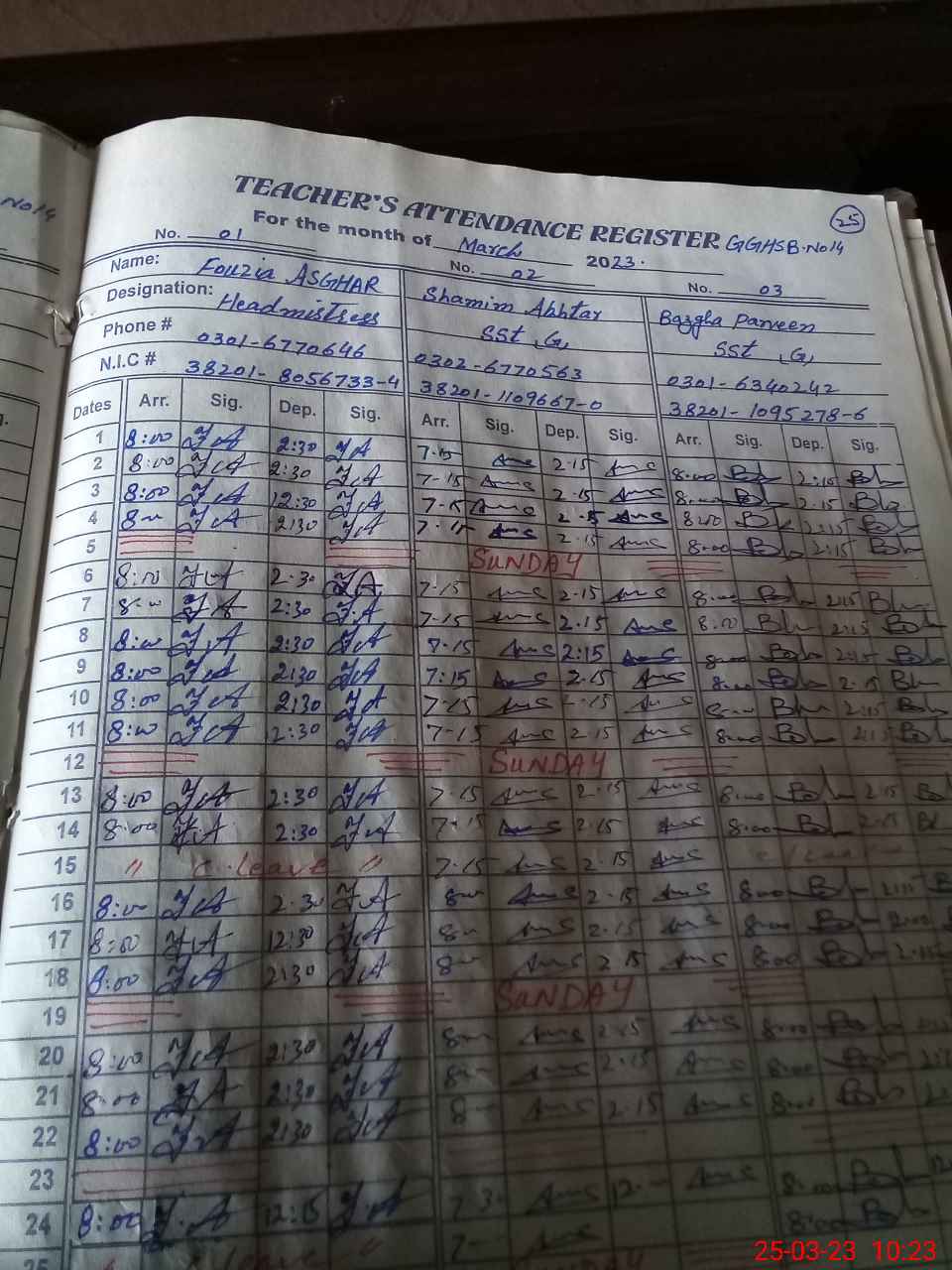 | Name: Az**** Pa**** Designation: (School Headmaster's/Headmistress's) Head Mistress Phone/Cell Number: 03**** |