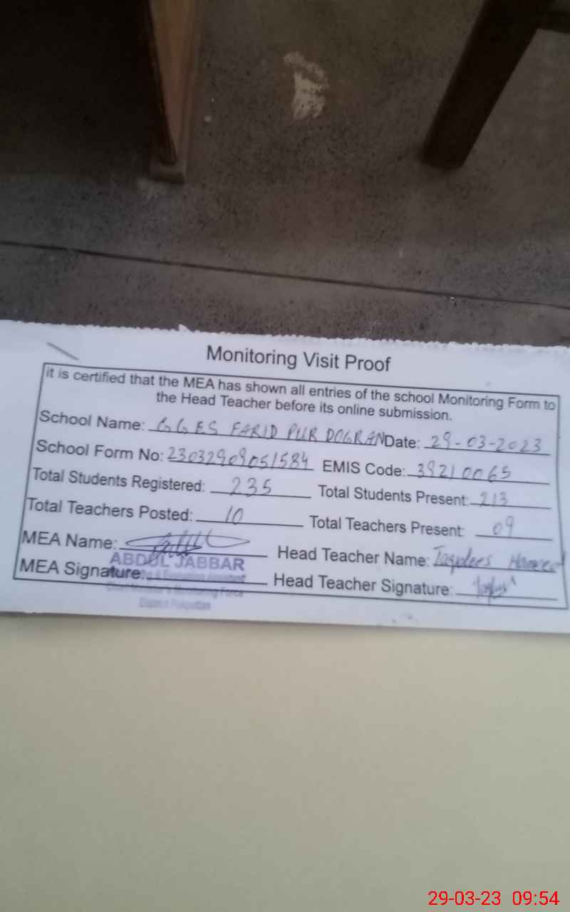 | EMIS Code: 39210065 | Name of School: GGES FARID PUR DOGRAN | |||