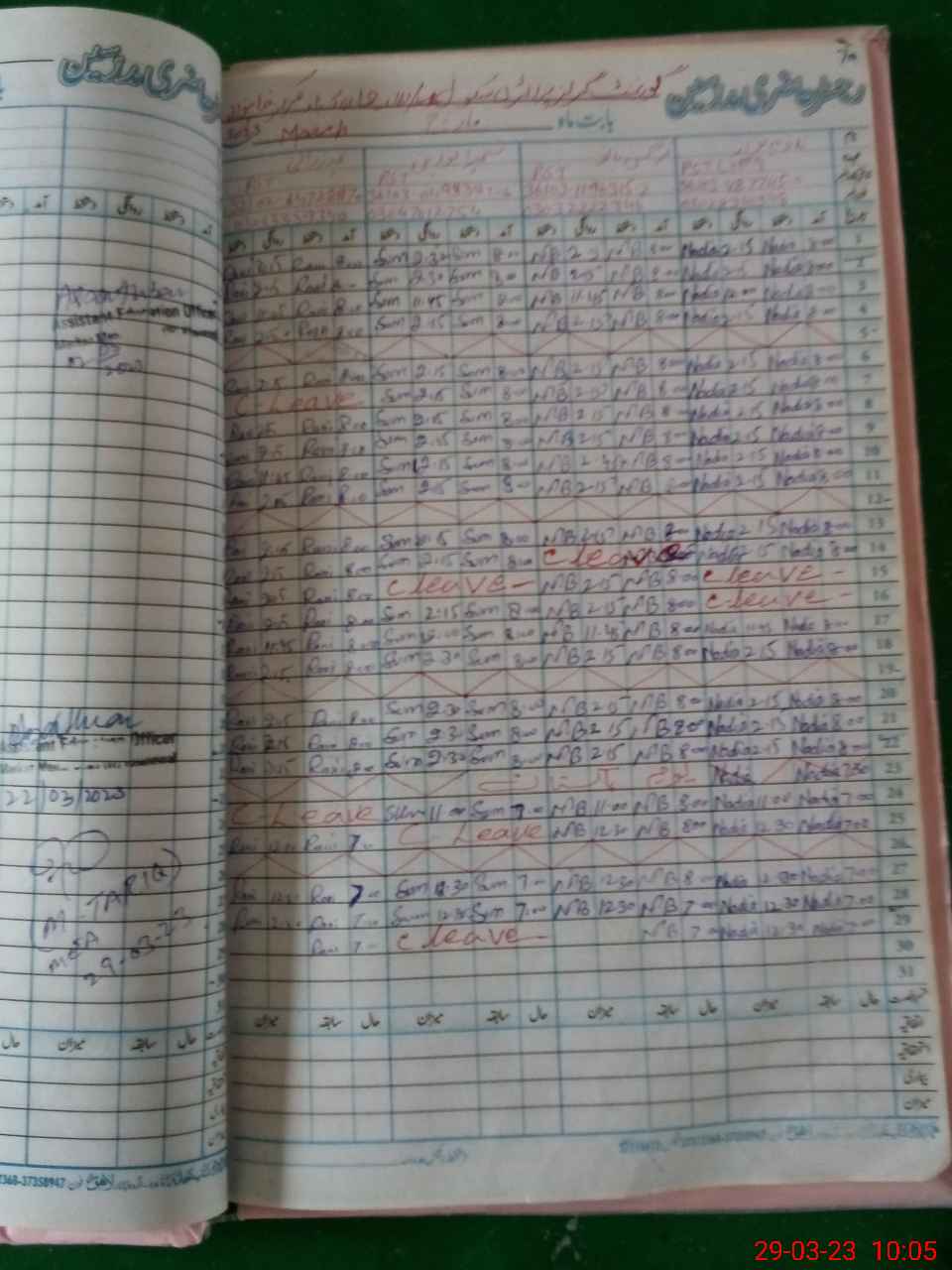 | Leave | Duty | Absent | Maternity | Medical | Ex- Pak |
