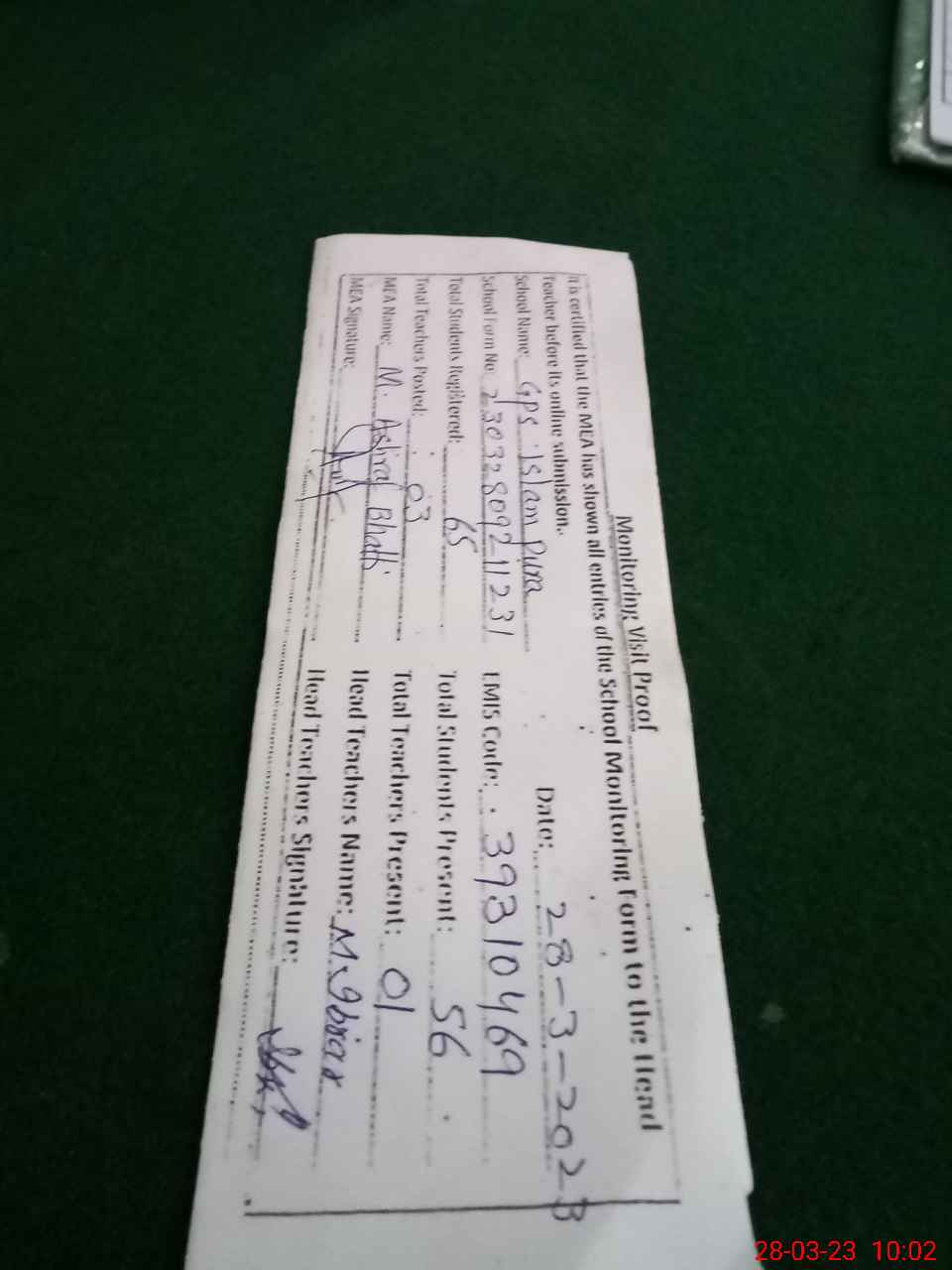 | EMIS Code: 39310469 | Name of School: GPS ISLAM PURA | |||