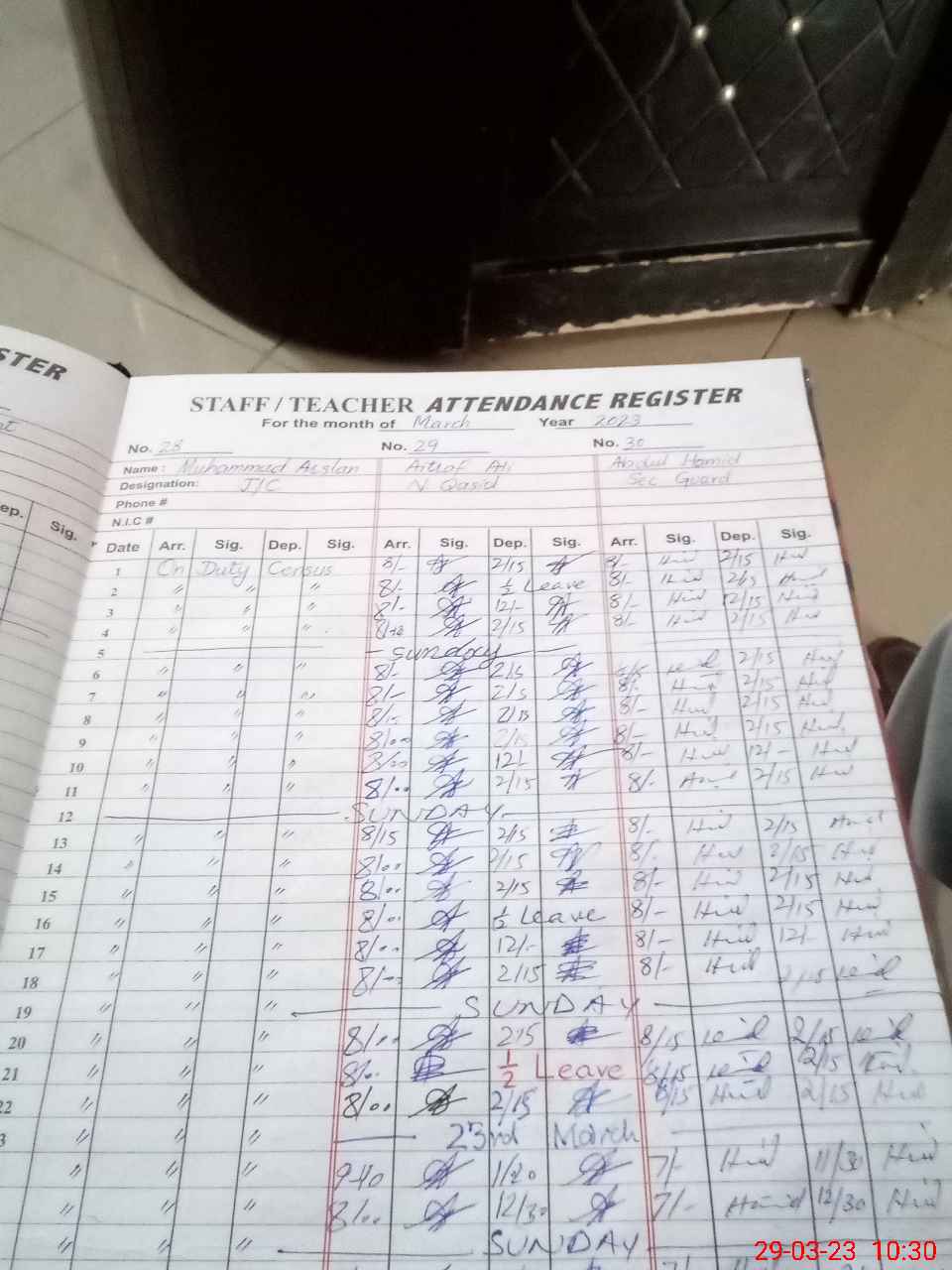 | CNIC | Full Name | Designation | R/C | Absence during last cal. month |
