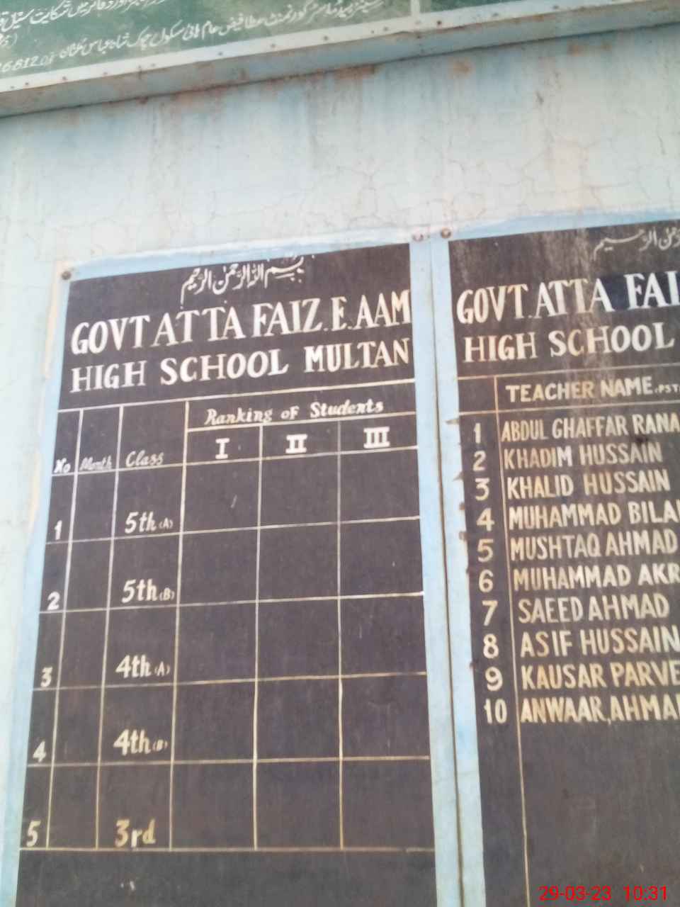 | EMIS Code: 36110021 | Name of School: GHS ATTA FAIZ-E-AAM MULTAN NEAR T.V. BOOSTER | |||