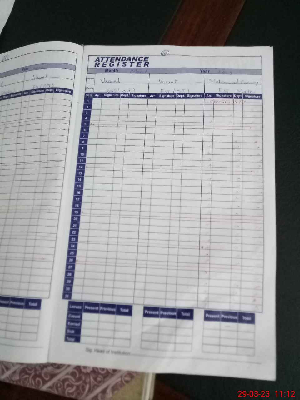 | No. of Students Present - Female | 0 | 0 | 0 | 0 | 0 | 0 | 0 | 0 | 0 | 0 | 0 | 0 | 0 | 0 | 0 | 0 |