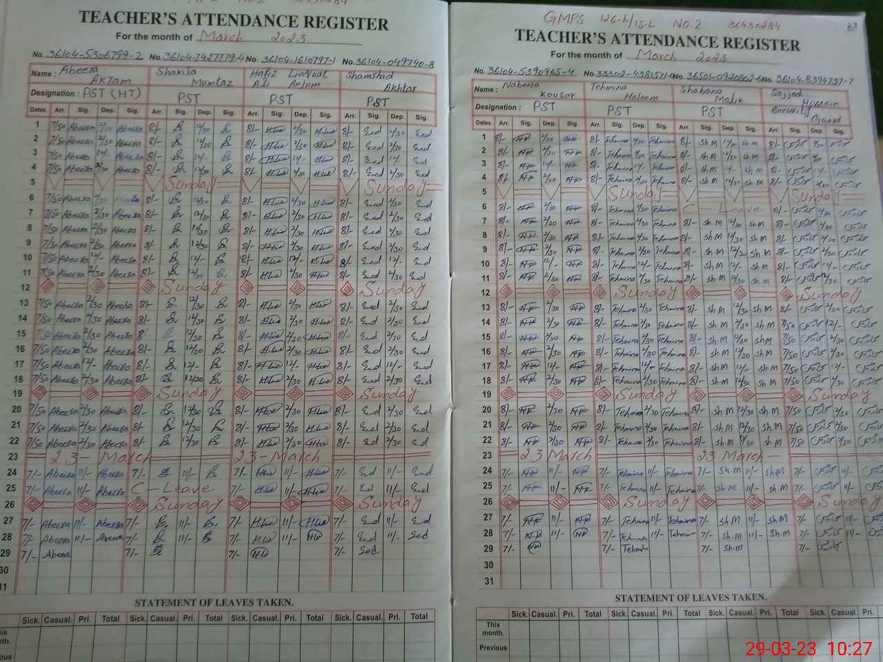 | Remarks (Use Separate Page if Required): Teacher Shabana Malik PST not added in PMIU list whereas total strength of teachers is 07 instead of 06 | |||||