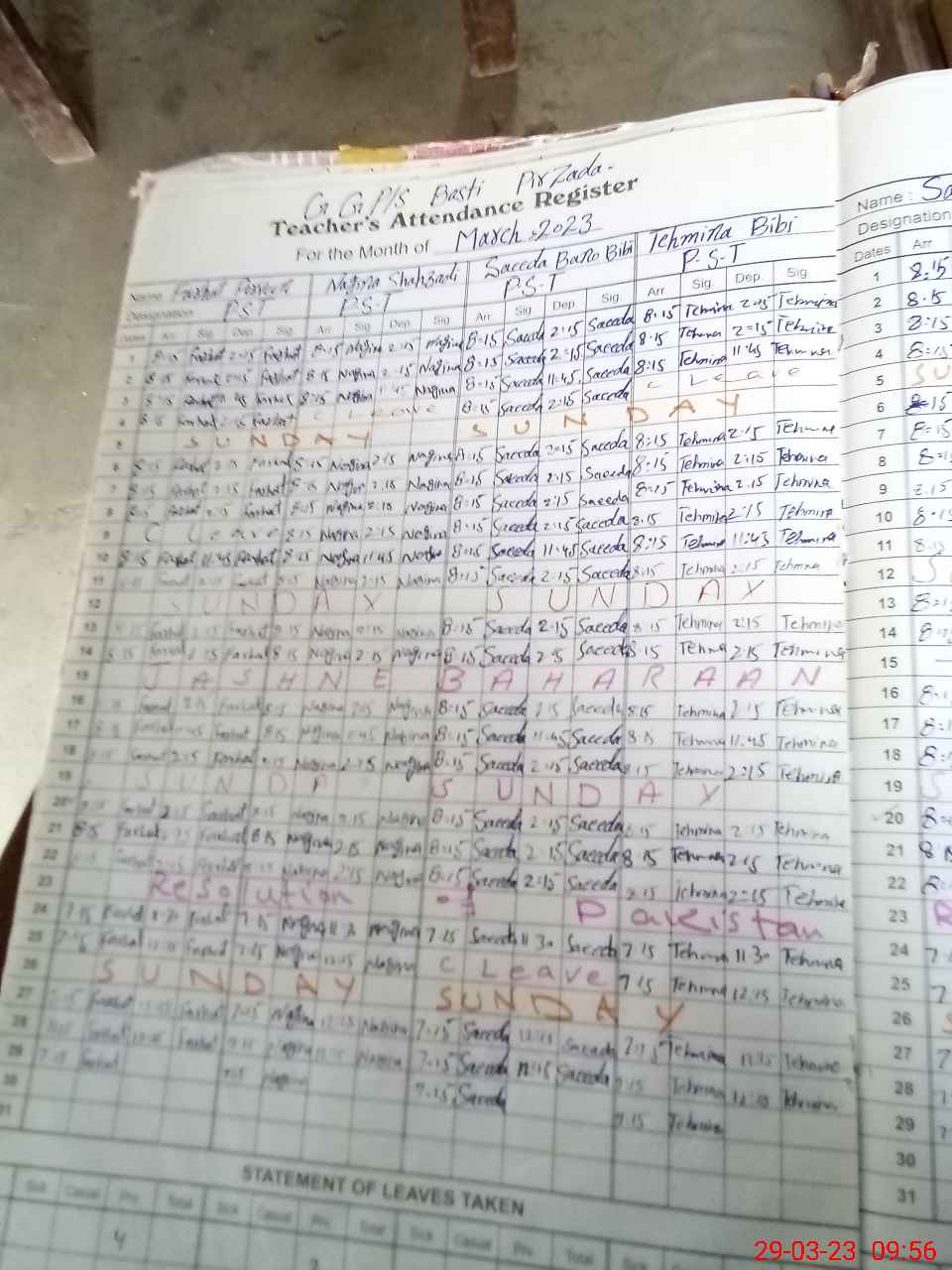 | CNIC | Full Name | Designation | R/C | Absence During Last Calender Month |