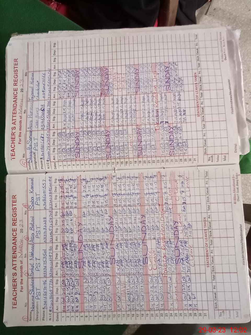 | Name: ZA**** NA**** Designation: (School Headmaster's/Headmistress's) PST Phone/Cell Number: 03**** |