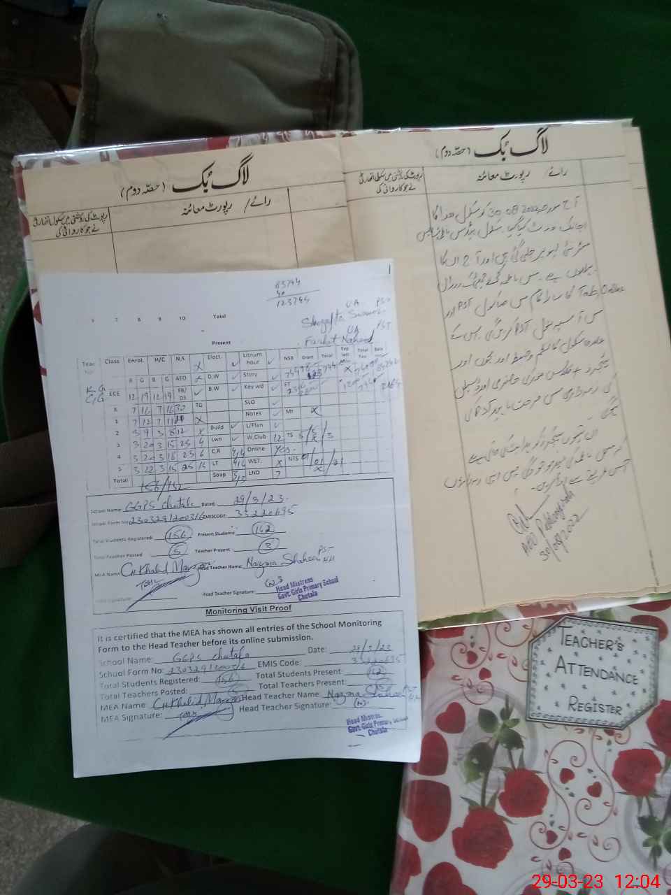 | Attendance Register | Head Teacher | MEA with School | Visit Proof |