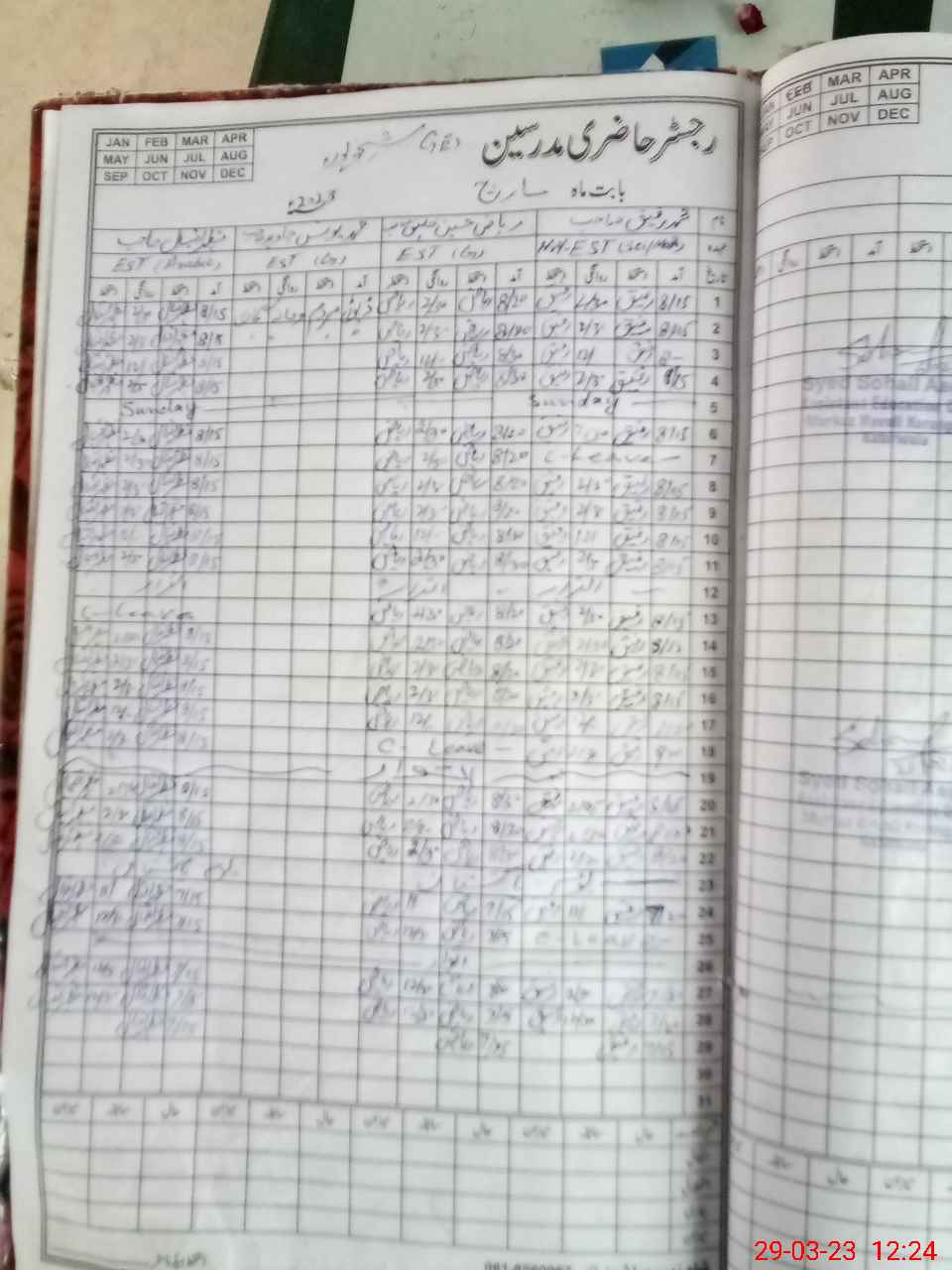| CNIC | Full Name | Designation | R/C | Absence During Last Calender Month |