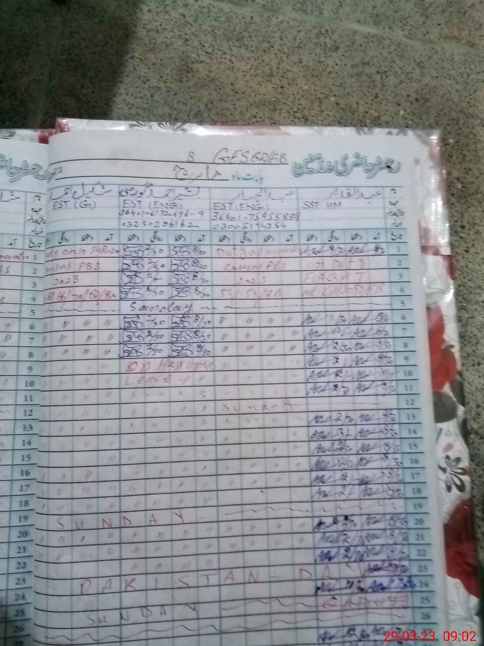 | CNIC | Full Name | Designation | R/C | Absence during last cal. month |
