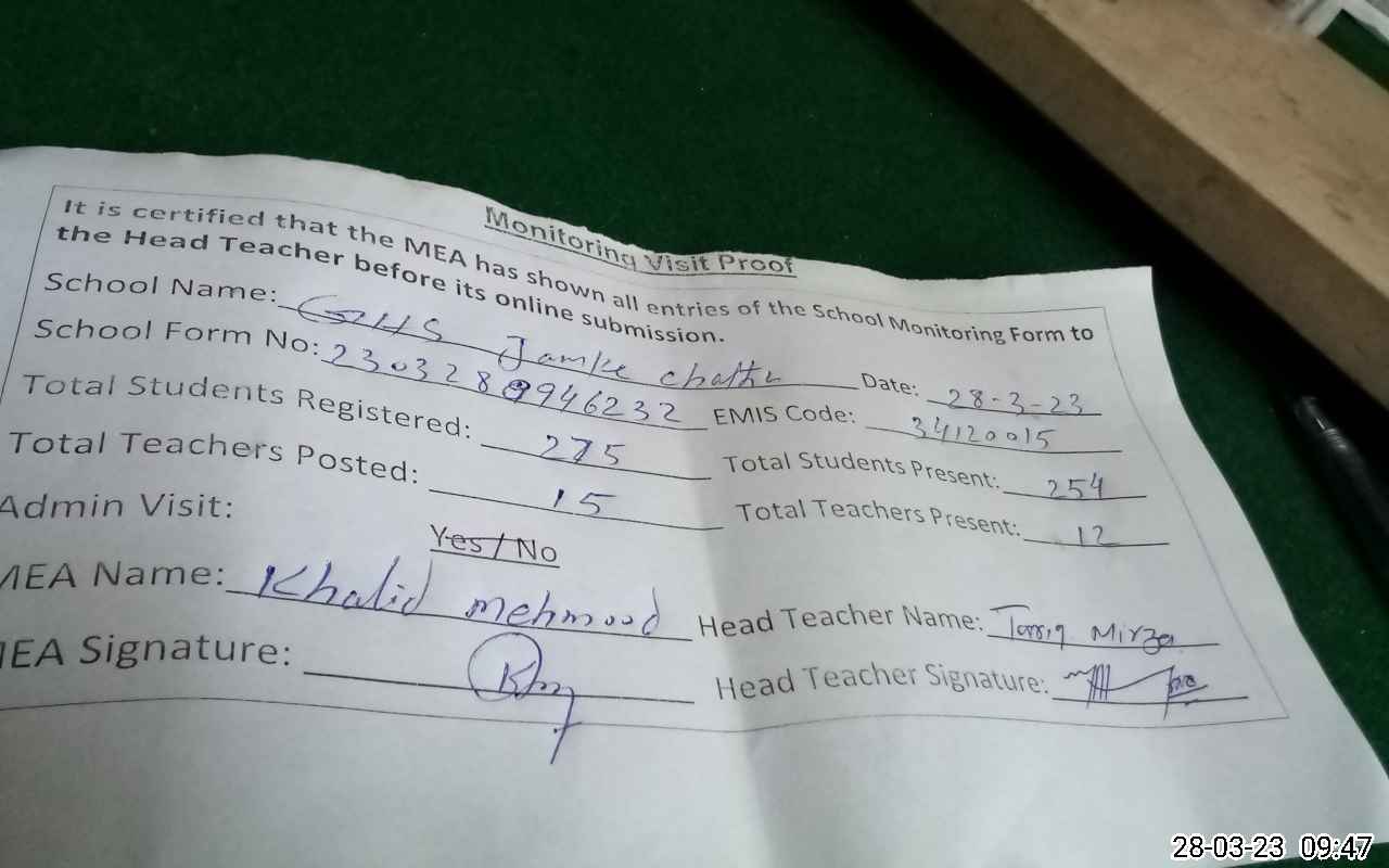 | EMIS Code: 34120015 | Name of School: GHS JAMKAY CHATHA | |||