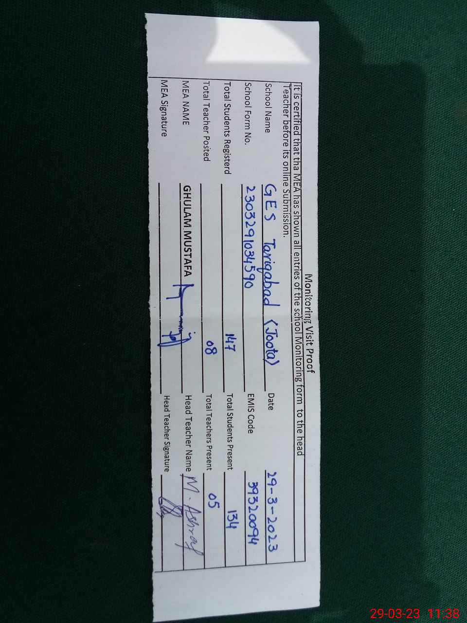 | EMIS Code: 39320094 | Name of School: GES TARIQ ABAD | |||