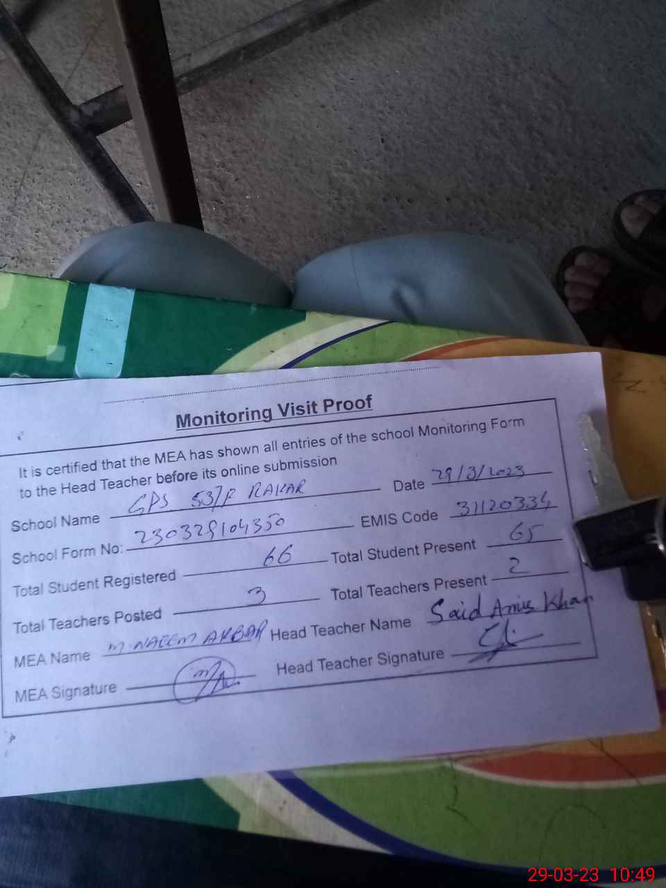 | EMIS Code: 31120334 | Name of School: GPS 53 RAKAR | |||