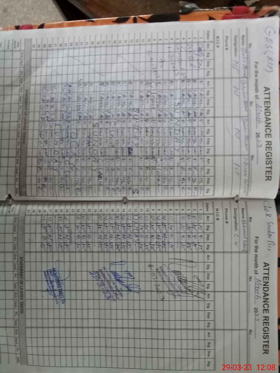 | Remarks (Use Separate Page if Required): NSB register not available as head teacher on census duty Insaaf programm afternoon children physically not present D3 form not available Morning shift student presence according to register LND not conducted | |||||