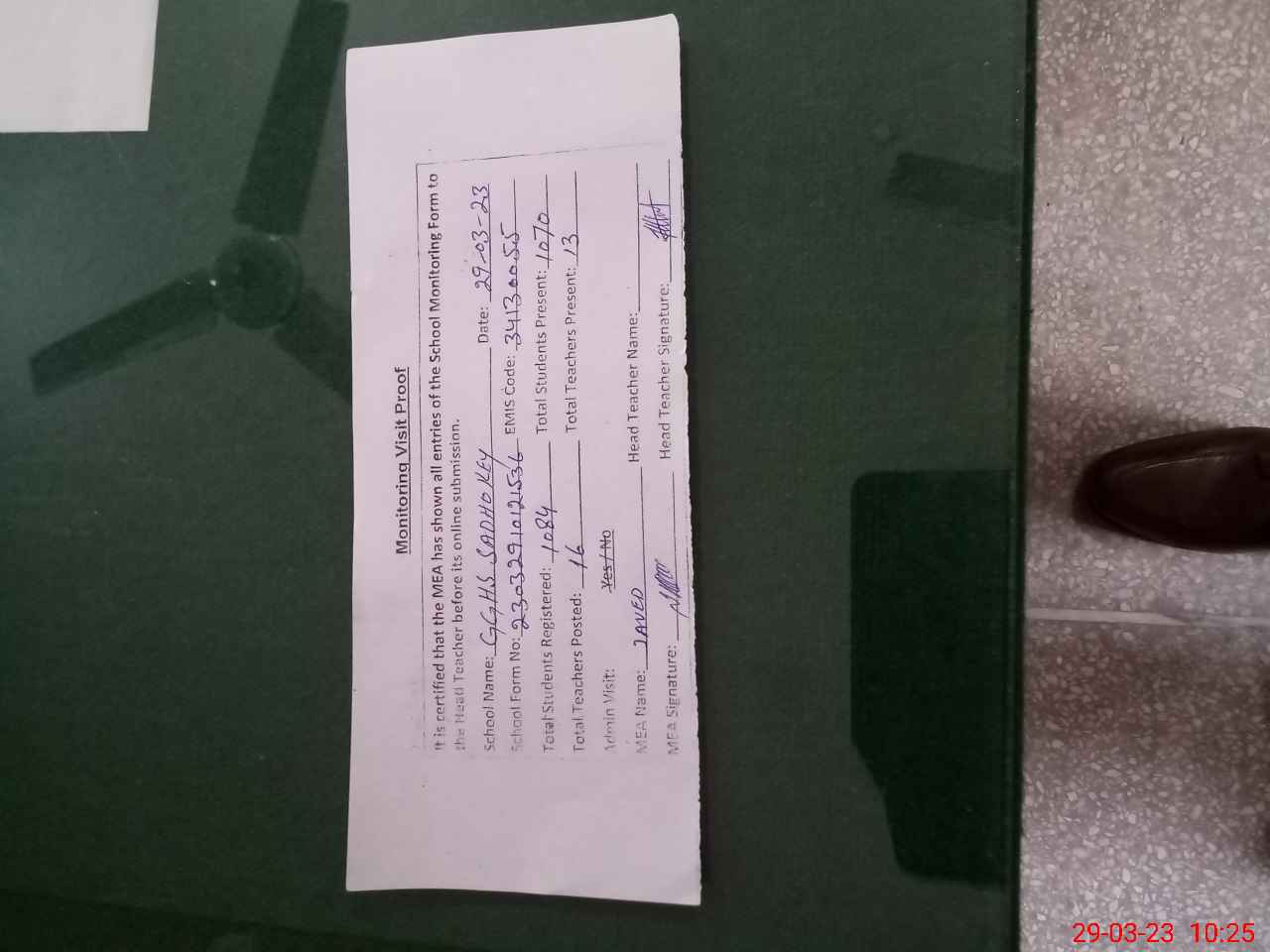 | Certified that this School was Inspected by the Undersigned MEA/DMO Today and the Information Stated Above is as Per Record. | |||||