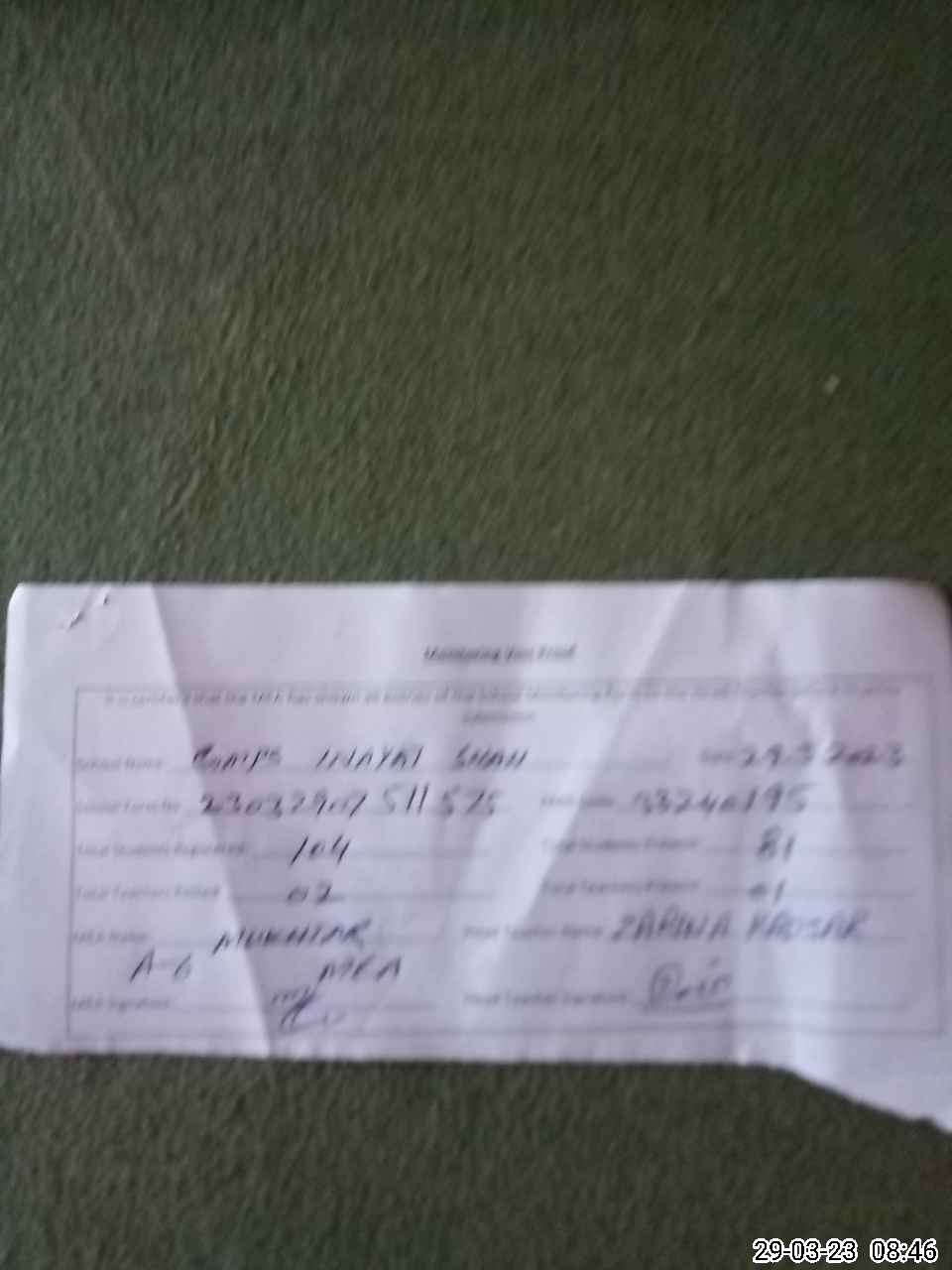| Certified that this School was Inspected by the Undersigned MEA/DMO Today and the Information Stated Above is as Per Record. | |||||