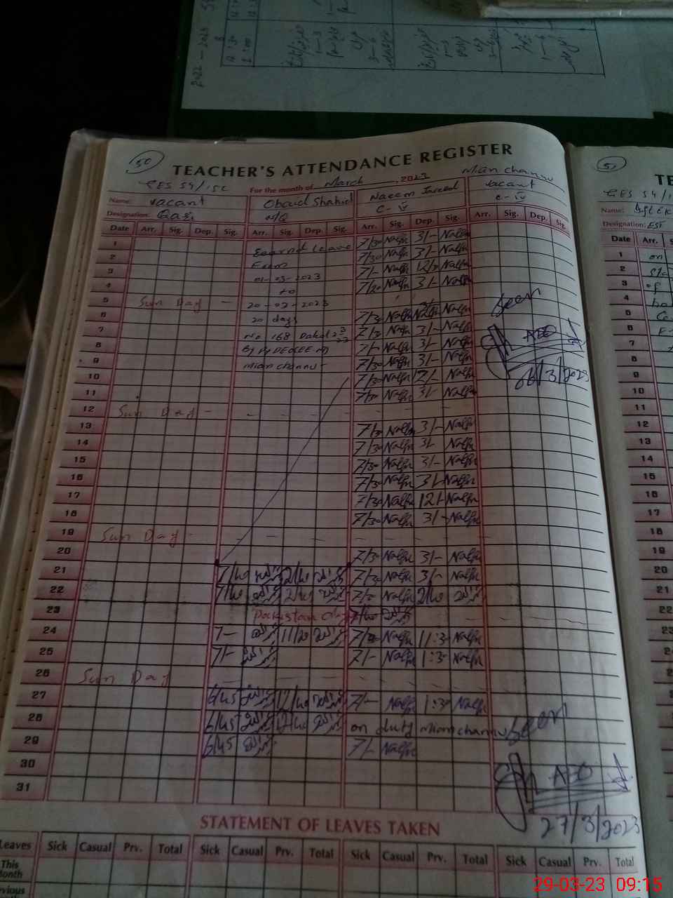 | Name: Na**** Ah**** Designation: (School Headmaster's/Headmistress's) PST Phone/Cell Number: 03**** |