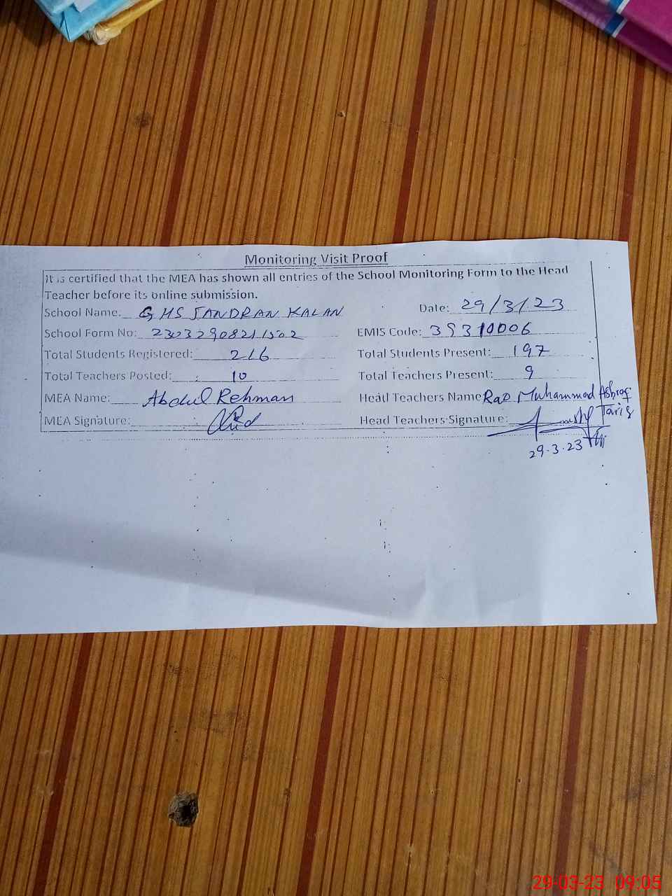 | EMIS Code: 39310006 | Name of School: GHS JANDRAN KALAN | |||