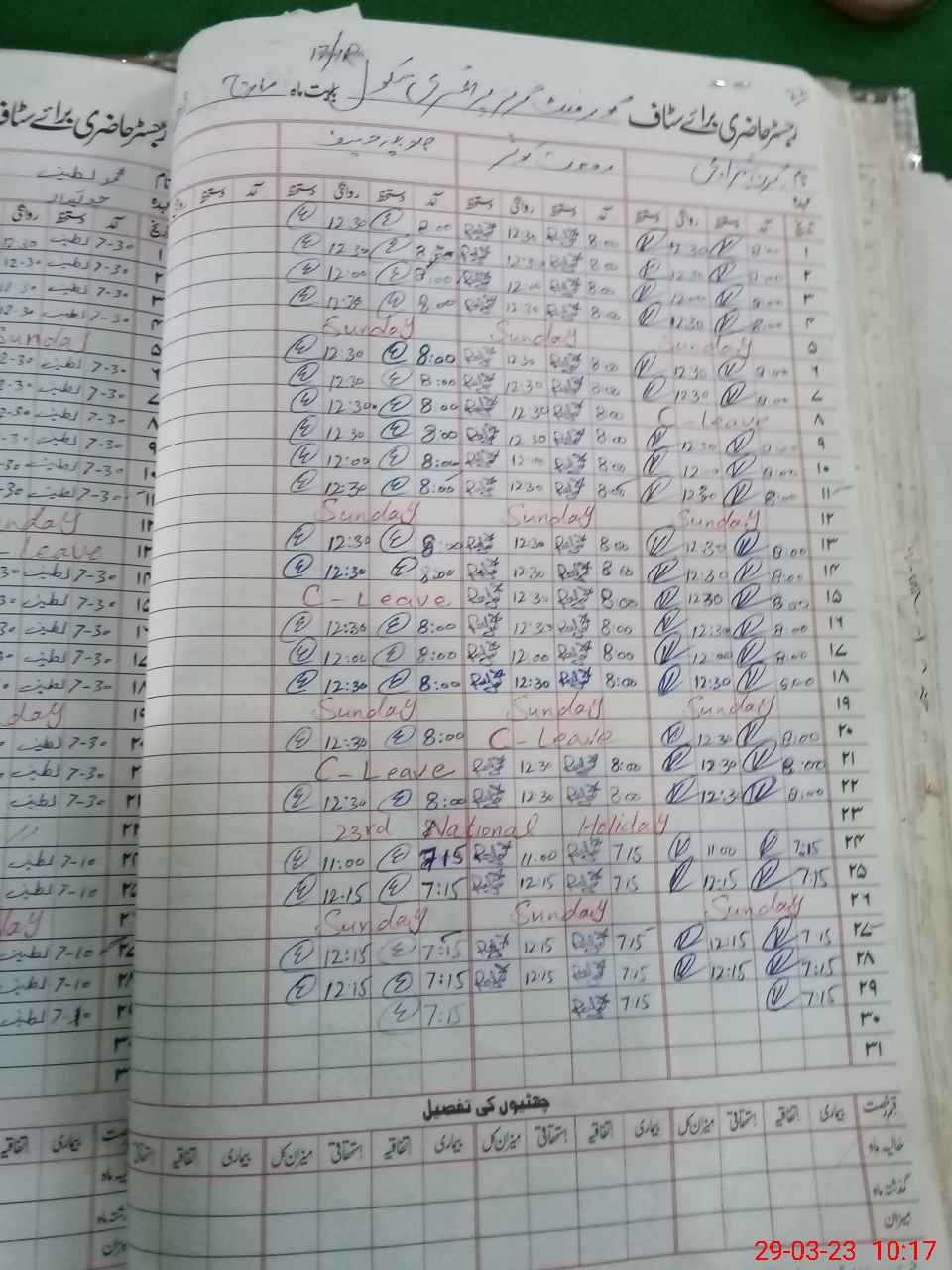| CNIC | Full Name | Designation | R/C | Absence During Last Calender Month |