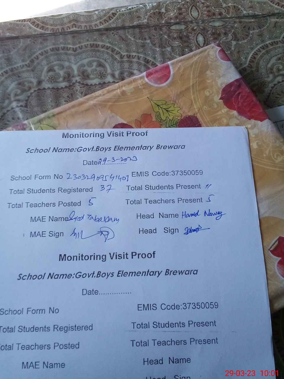 | Certified that this School was Inspected by the Undersigned MEA/DMO Today and the Information Stated Above is as Per Record. | |||||
