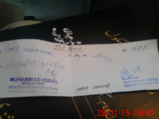 | Name: Sh**** Al**** Qu**** Designation: (School Headmaster's/Headmistress's) H M Phone/Cell Number: 03**** |