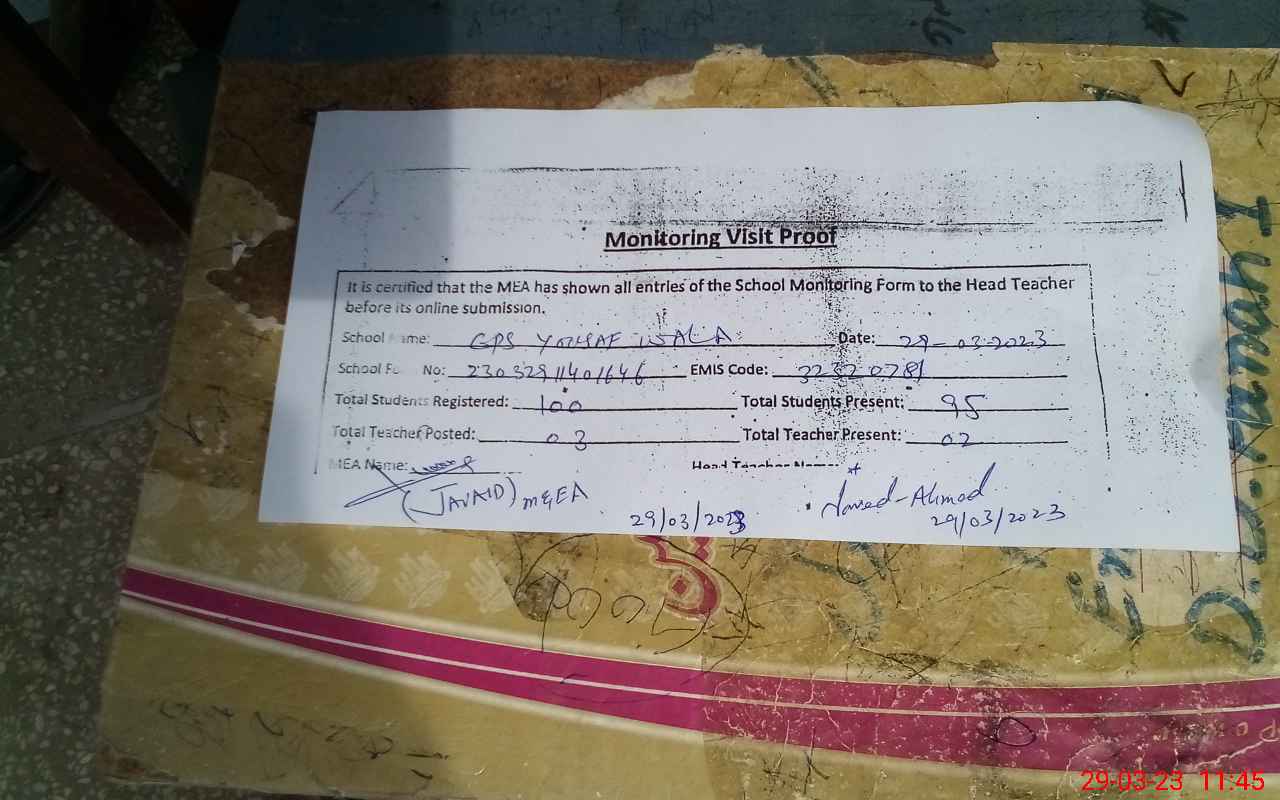| EMIS Code: 32320781 | Name of School: GPS YOUSUF WALA | |||