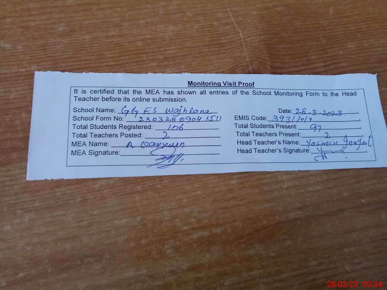 | EMIS Code: 39311010 | Name of School: GGES WAJHLANA | |||