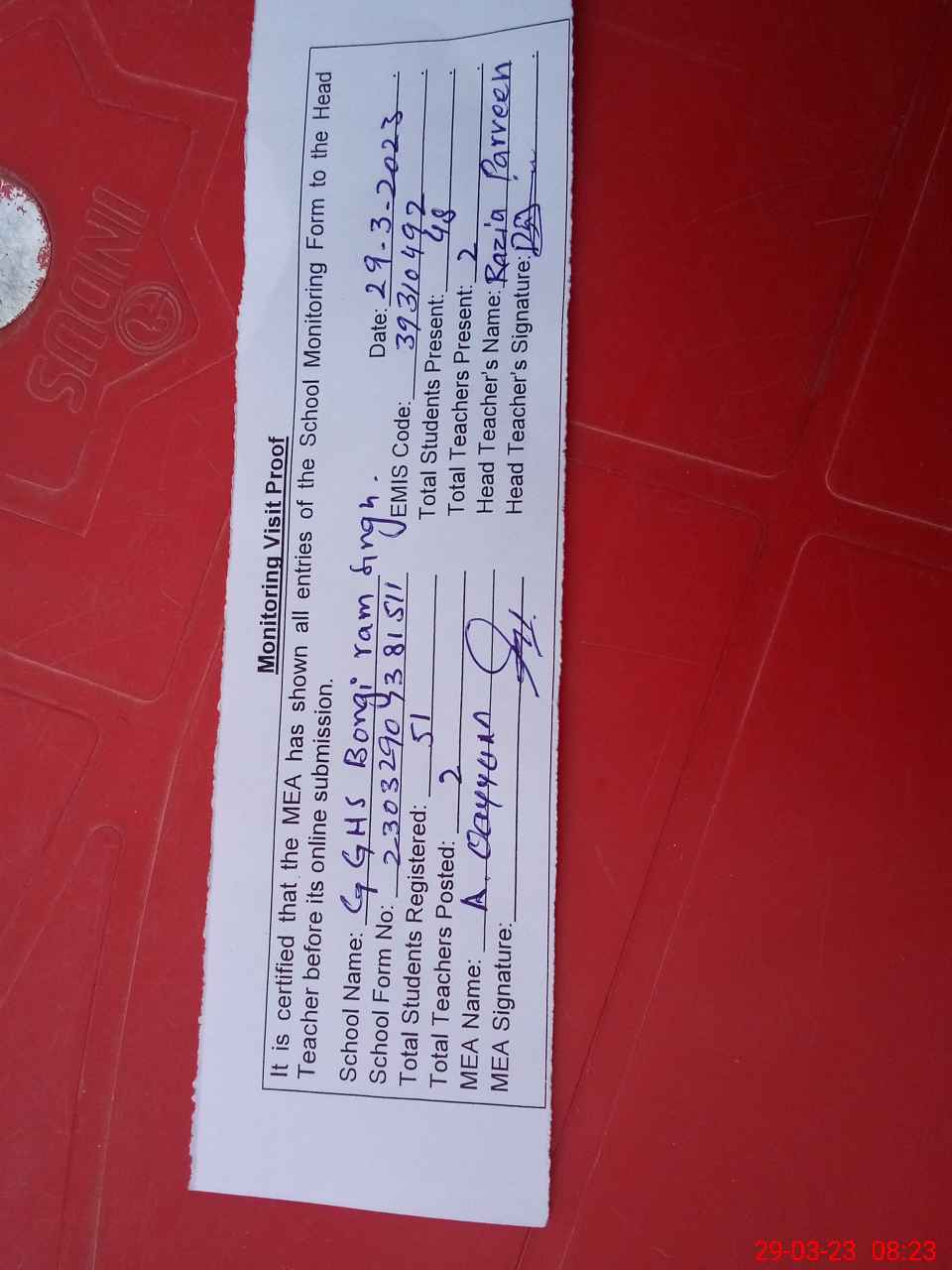| EMIS Code: 39310492 | Name of School: GGHS BONGI RAM SINGH | |||