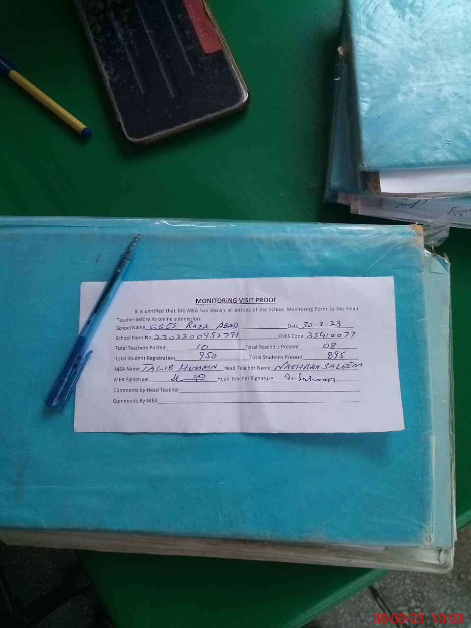 | EMIS Code: 35410077 | Name of School: GGES RAZA ABAD | |||