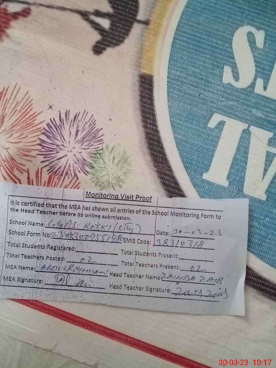 | EMIS Code: 38310318 | Name of School: GGPS KUTKI | |||