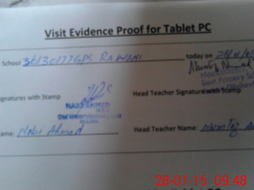 | Attendance Register | Head Teacher | MEA with School | Visit Proof |