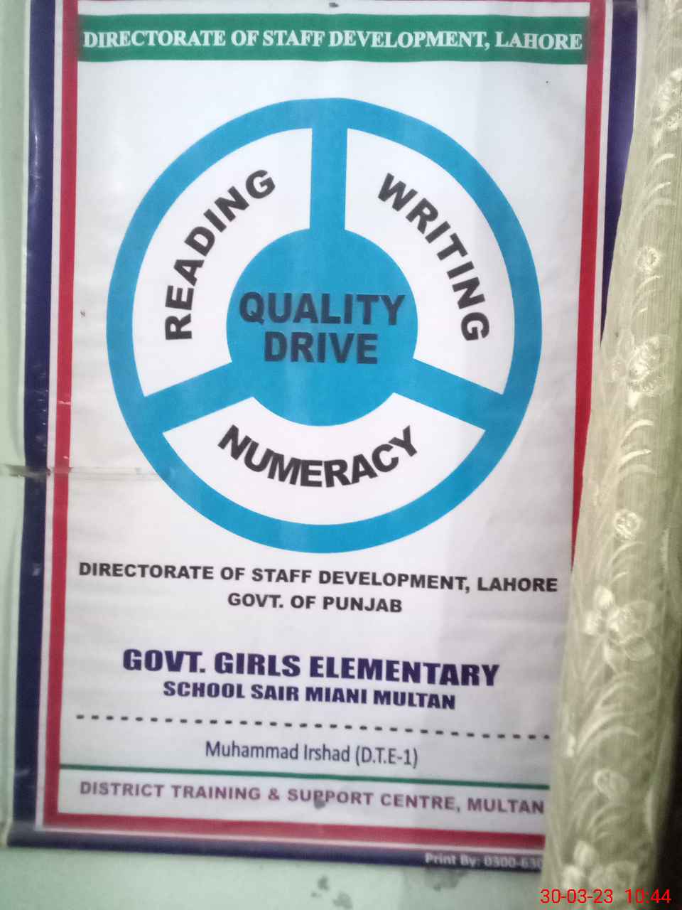 | EMIS Code: 36110231 | Name of School: GGES RAM PUR SAIR MIANI MULTAN | |||